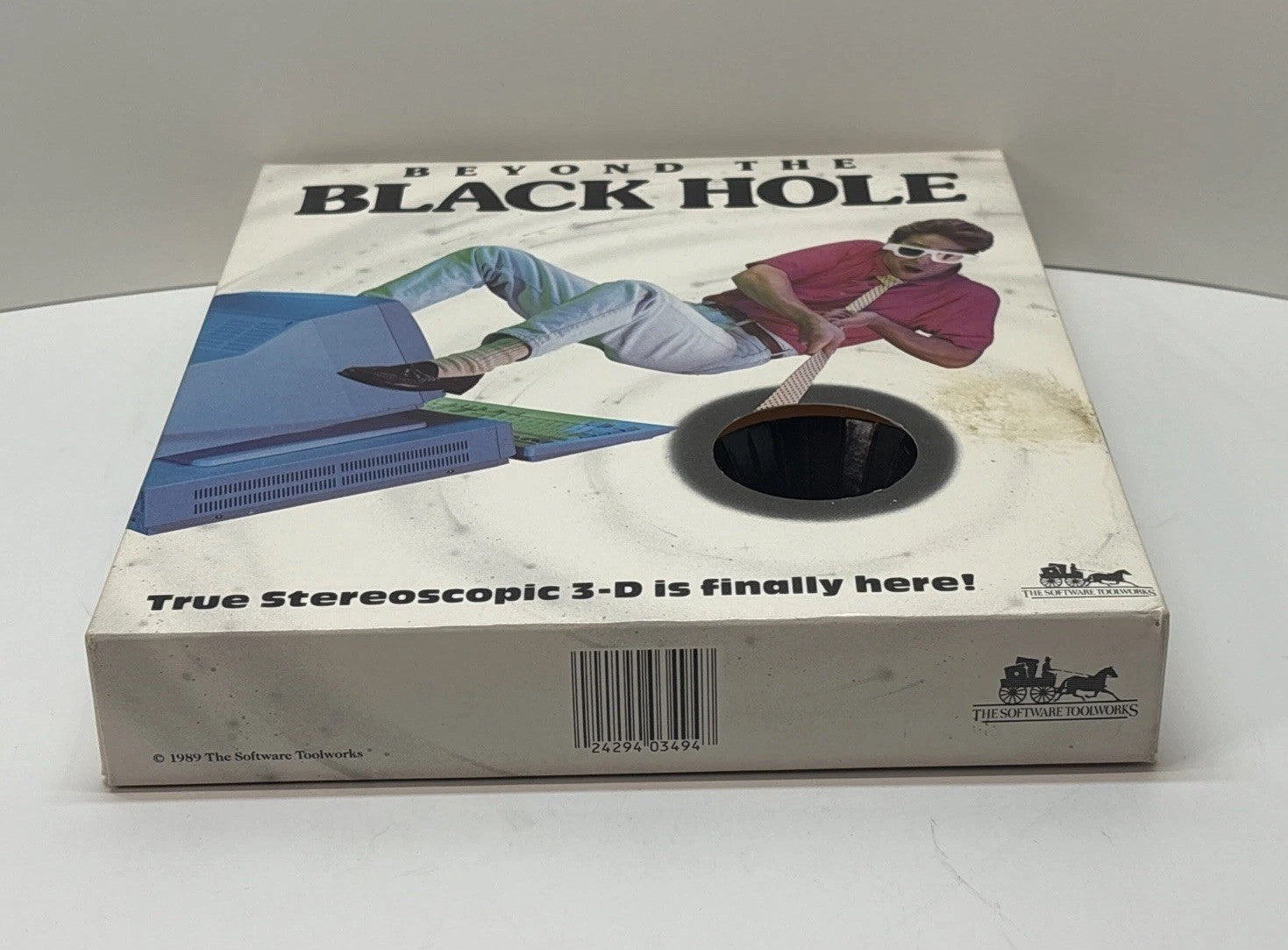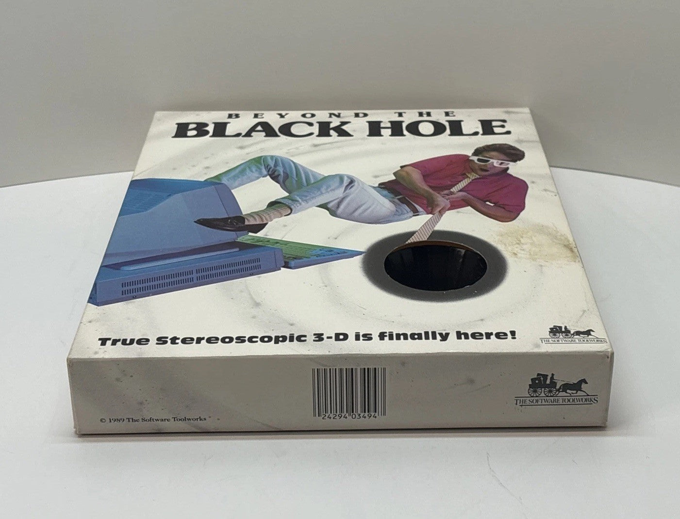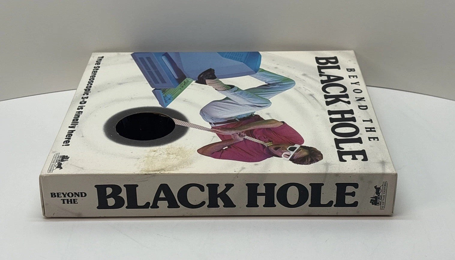Very nice and complete copy of Beyond the Black Hole, the early stereoscopic 3-D PC game by The Software Toolworks. The big box shows some typical wear and surface marking but remains structurally solid. Contents are fully complete and well-preserved.