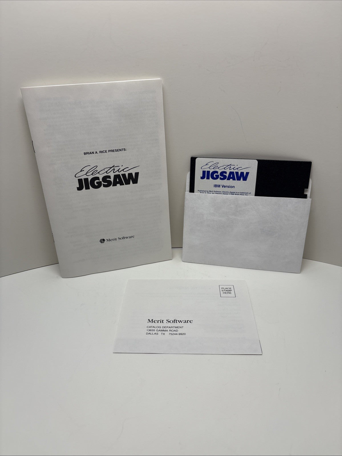VINTAGE Brian A. Rice Presents: Electric Jigsaw Merit Software IBM PC Game 5.25". Condition is Like New. Shipped with Canada Post Expedited Parcel.