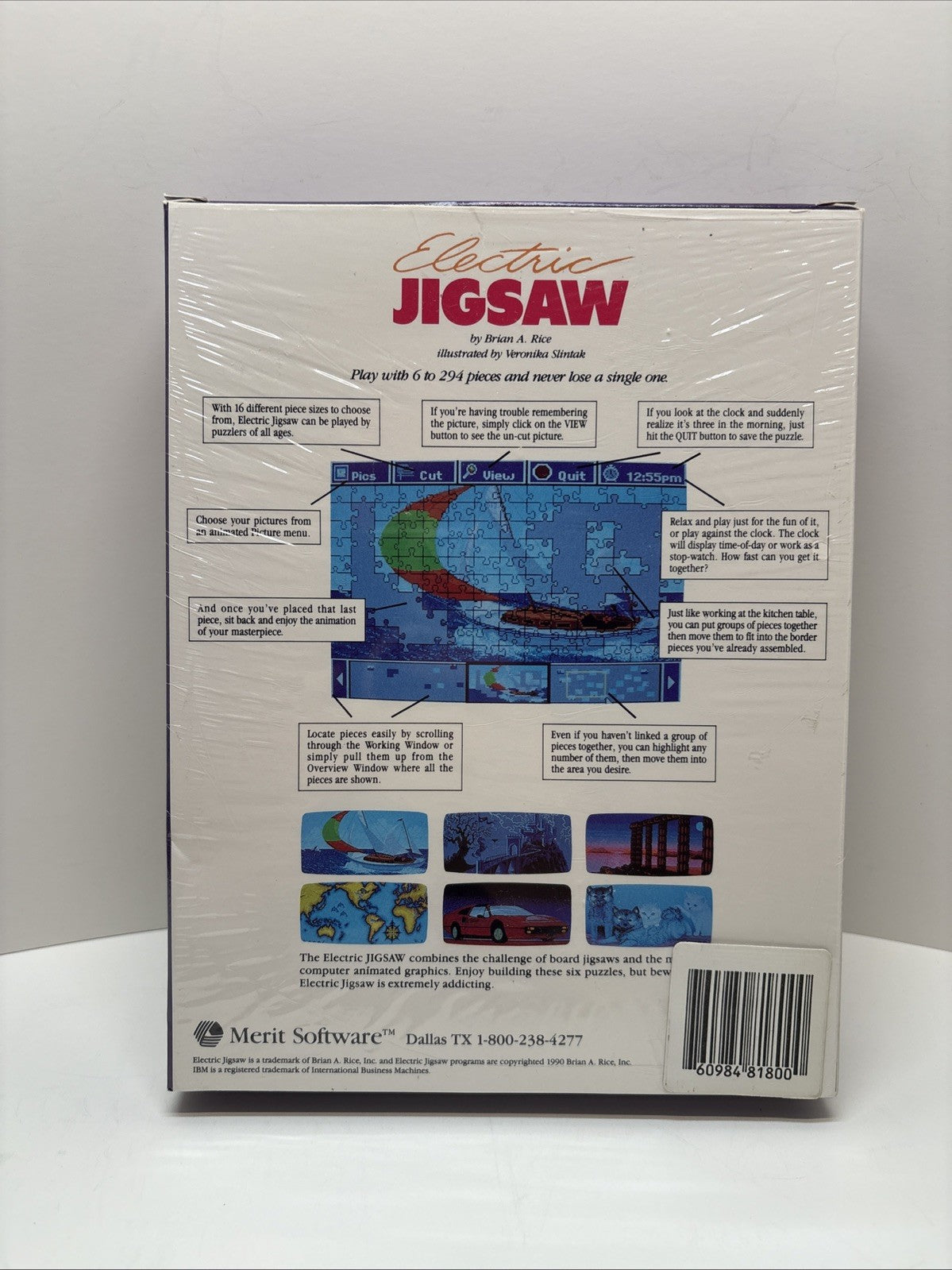Brian A. Rice Presents: Electric Jigsaw (1990) Merit Software IBM PC Game 5.25"