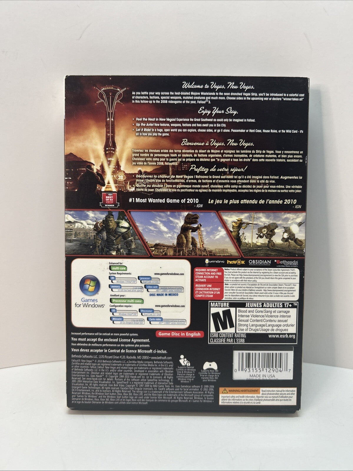 Fallout New Vegas Computer Game Windows PC DVD-ROM Video Game CIB With Sleeve