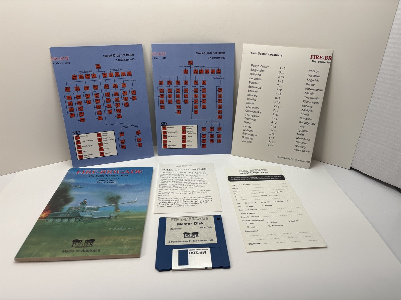 This is an exceptionally complete collector's copy of Fire-Brigade: The Battle for Kiev - 1943, one of the earliest highly detailed WWII operational strategy titles ever released for Macintosh. This copy includes: