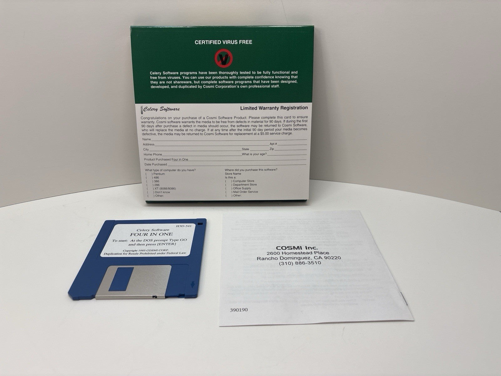 Four in One (1993) PC Game – 3.5” Disk – COSMI Celery Software – Complete CIB