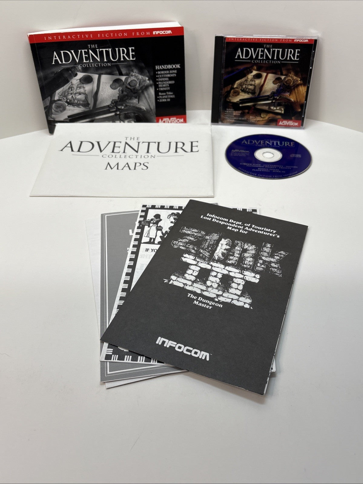 This listing is for a fully complete copy of The Adventure Collection, featuring five classic Infocom text adventures on CD-ROM. All original feelies, maps, and inserts are included exactly as shown.
