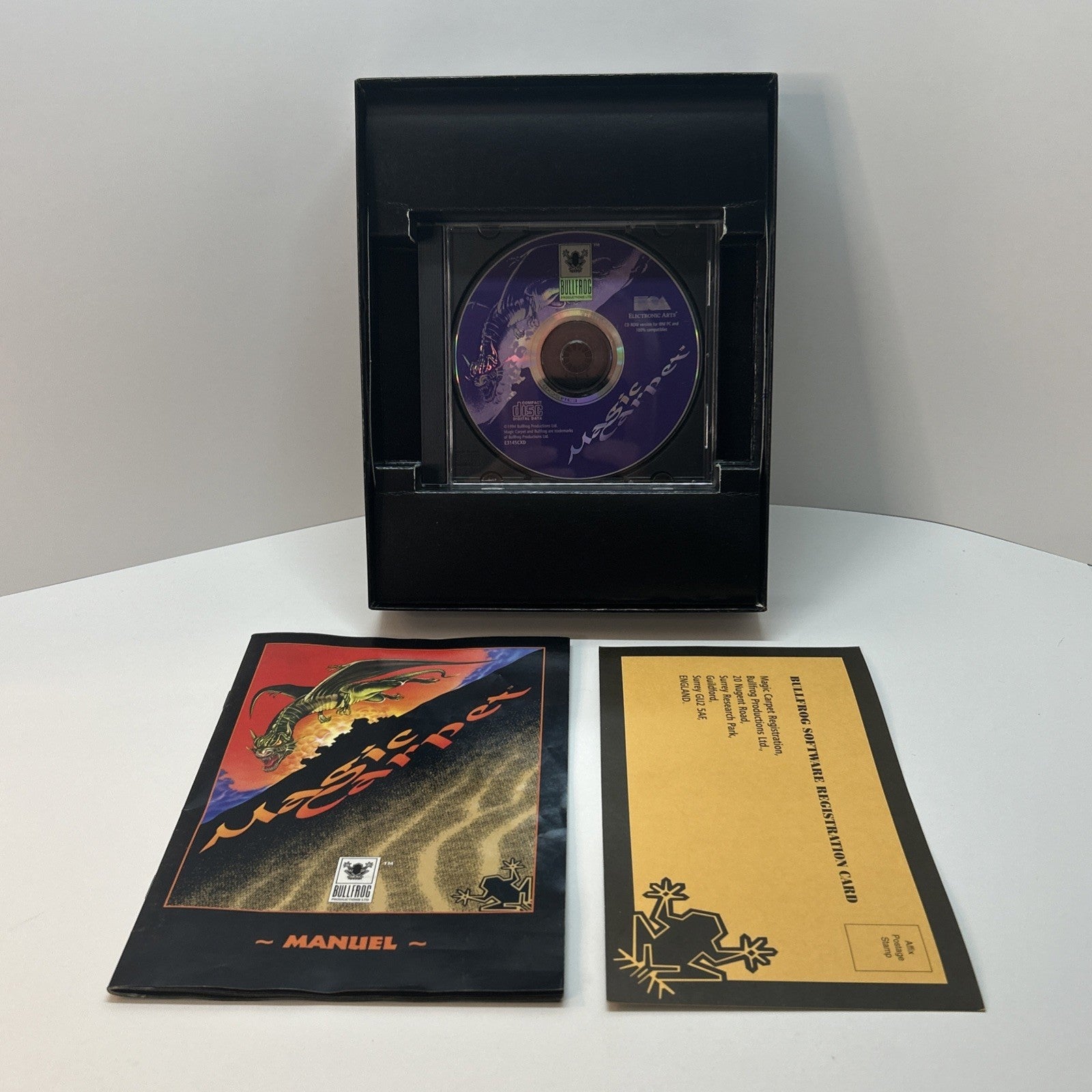 Magic Carpet (PC CD-ROM Windows) Big Box Bullfrog 1994 French - No 3D Glasses. Condition is Very Good. Shipped with Canada Post Expedited Parcel.