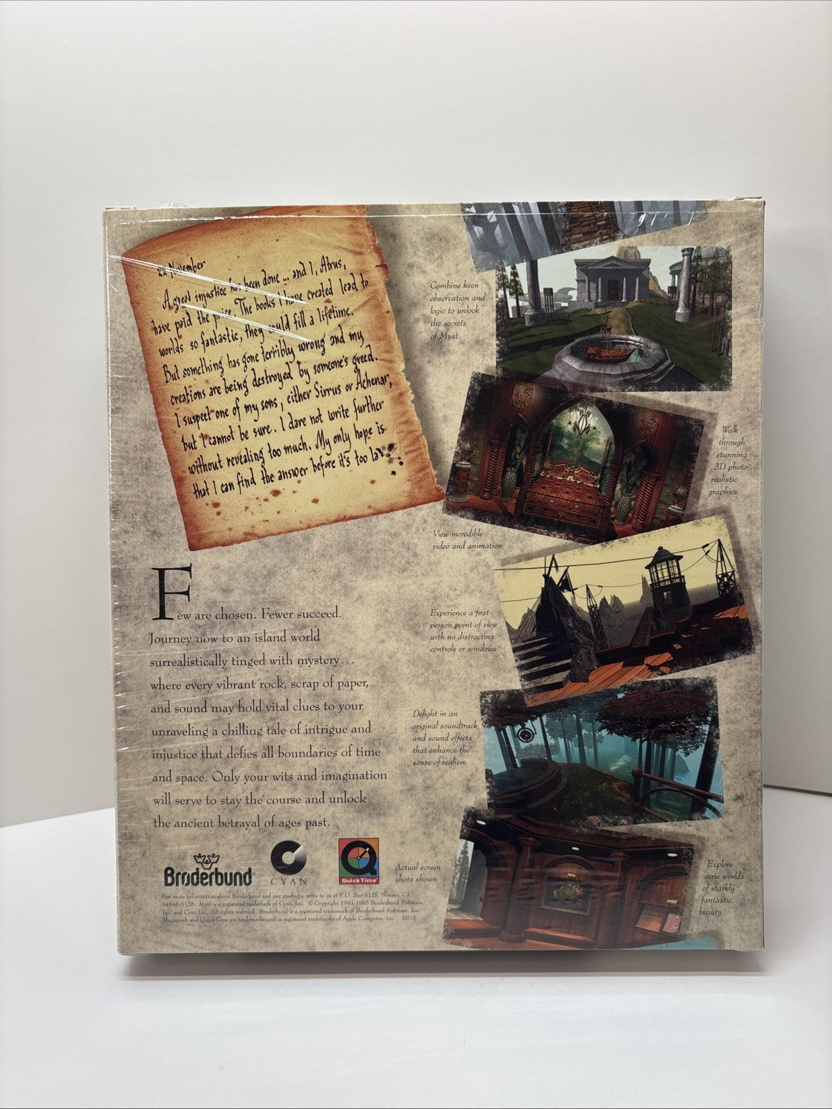 Myst (MAC, 1993) CD-ROM Broderbund Software Big Box - Opened With Partial Seal. Condition is Like New. Shipped with Canada Post Expedited Parcel.