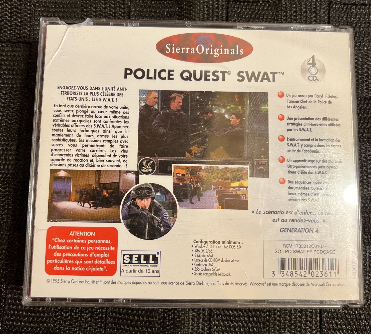 Police Quest - SWAT Pc 4x cd rom Sierra Originals - FRENCH