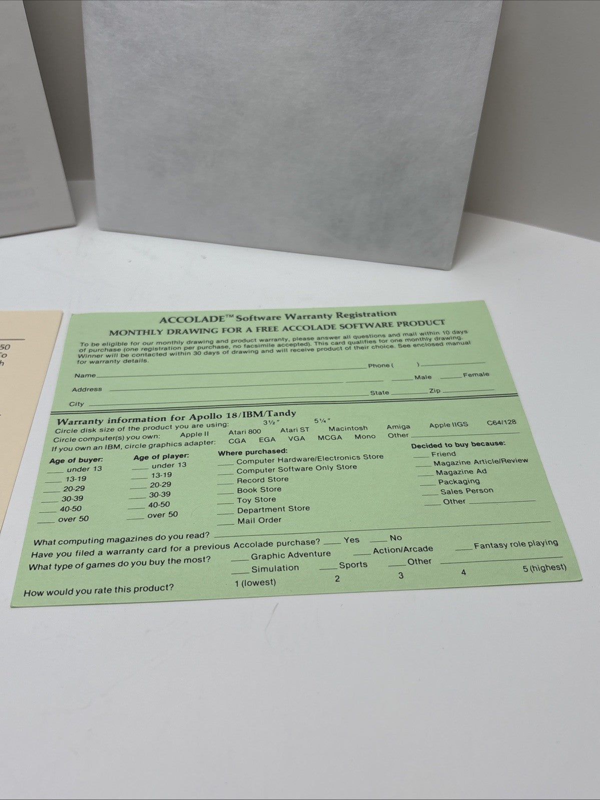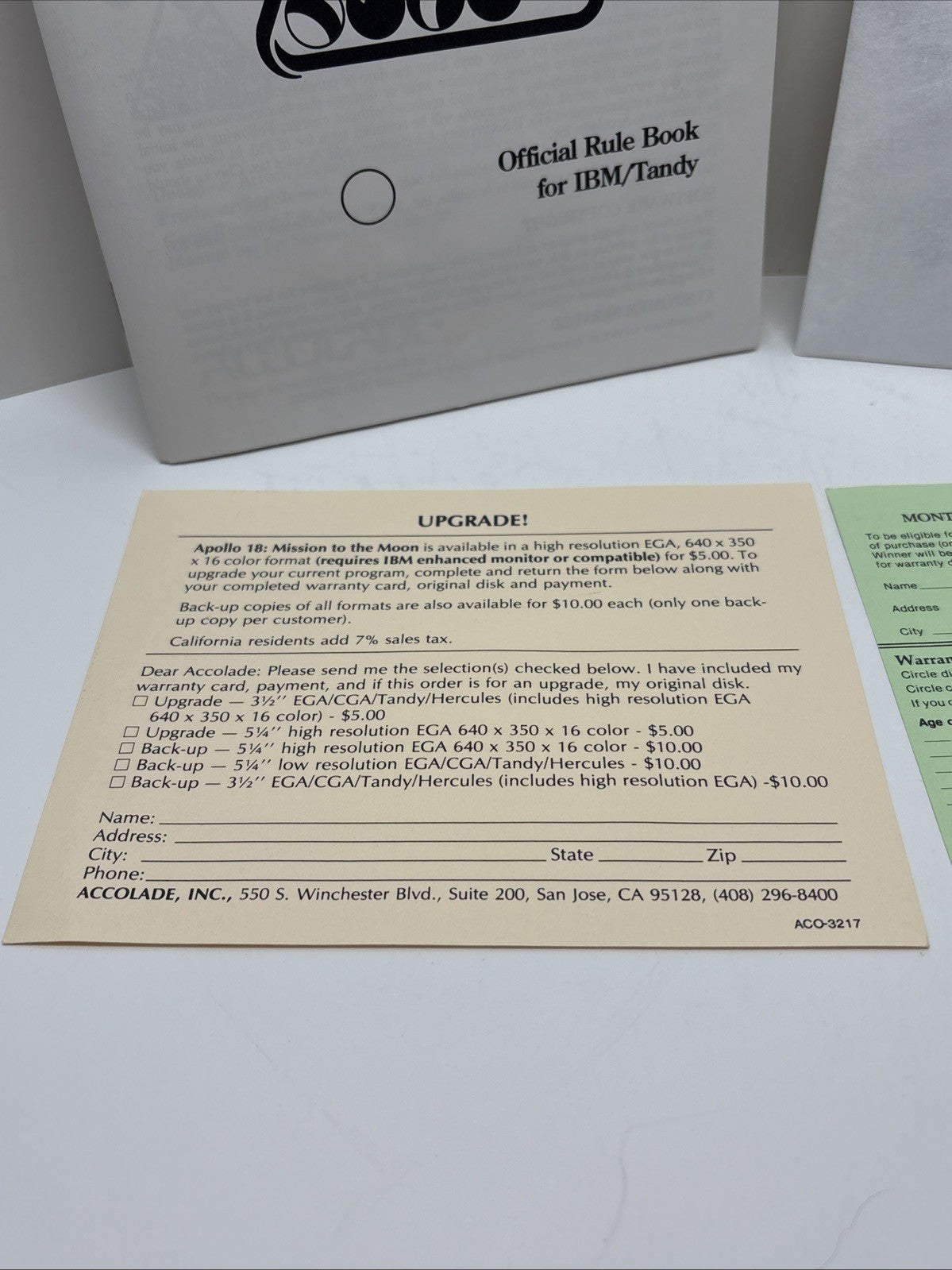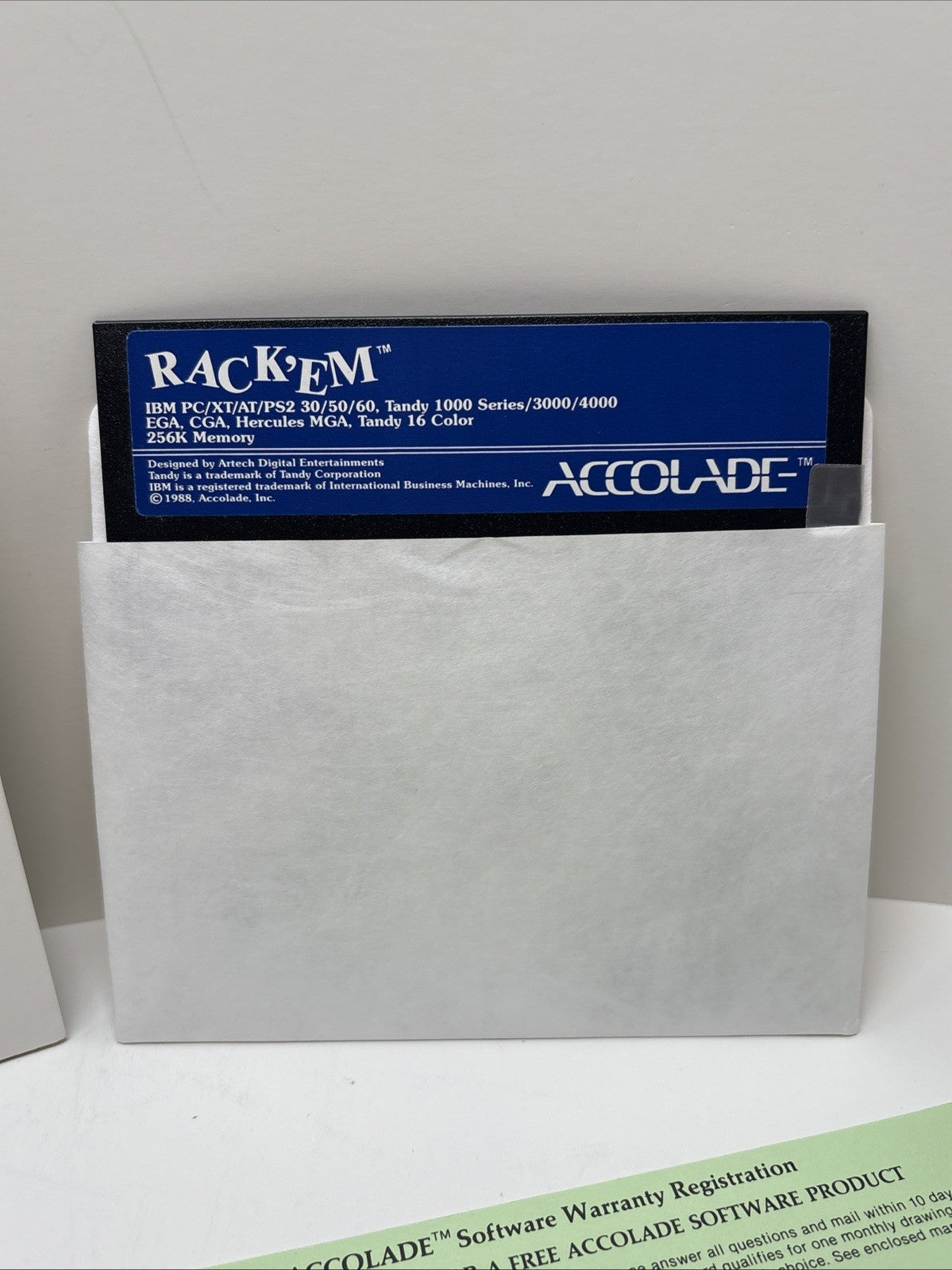 Rack Em Accolade IBM PC Tandy Floppy Disk Game Complete In Box CIB