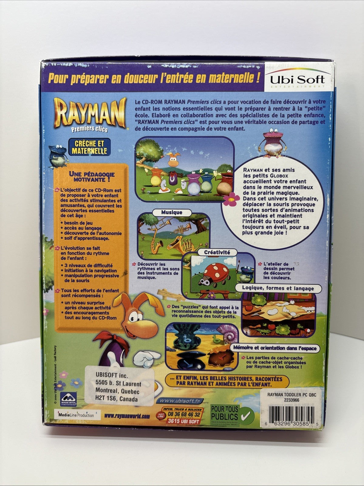 Rayman Premiers Clics Crèche Et Maternelle PC French BIG BOX. Condition is Good. Shipped with Canada Post Expedited Parcel.