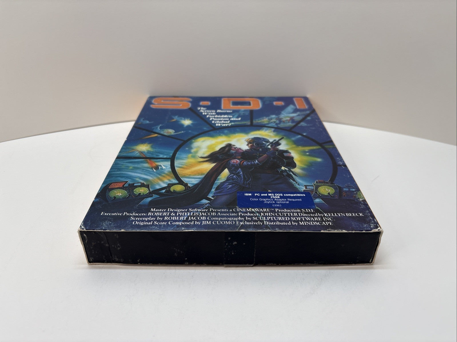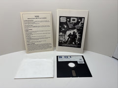 Rare original 1986 Cinemaware release of S.D.I. for IBM PC and MS-DOS. Includes original big box slipcase, illustrated cover box, 5.25" floppy disk, reference card, manual and disk sleeve.