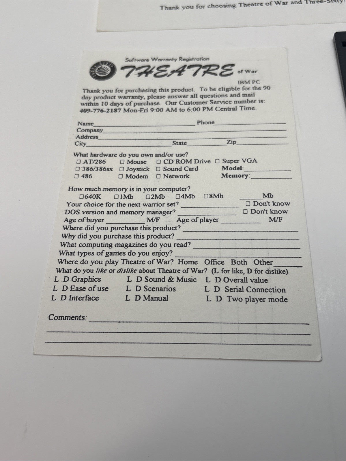 Theatre of War - Three-Sixty Pacific - 1992 / IBM/PC Big Box. Condition is Very Good. Shipped with Canada Post Expedited Parcel.