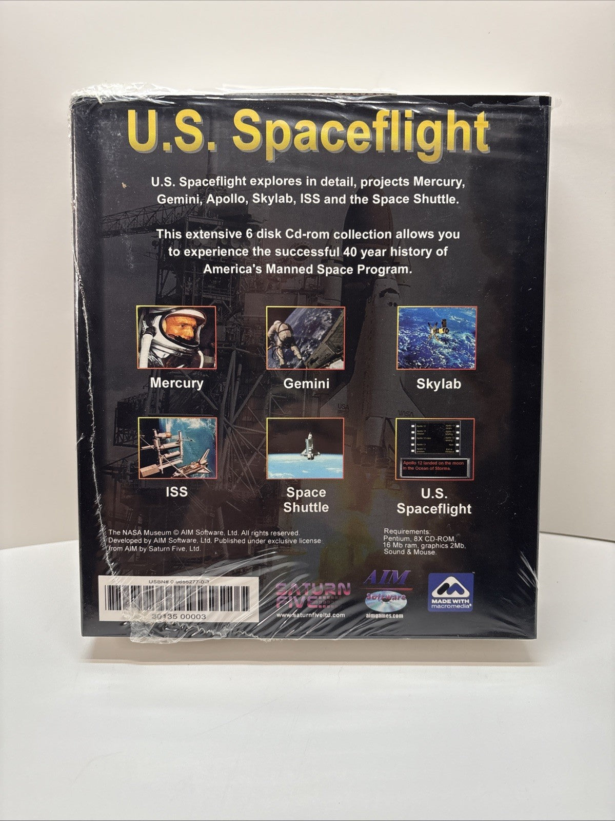 US Spaceflight PC Big Box Game - CD ROM 6 Astronauts Aim Software - Partial Seal